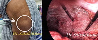 The patient reported intermittent swelling in the left superior lumbar region over the past year, which became more noticeable during coughing and reduced spontaneously. DR.SATISH KUMAR RAJU.S, Consultant General & Laparoscopic Bariatric surgeon at SLG HOSPITALS, Bachupally, Hyderabad, who examined the patient, found a lump in the upper left lumbar area that became more prominent during coughing. Imaging tests confirmed it was a Grynfeltt-Lesshaft hernia. To treat this, Dr. Raju and his team performed a minimally invasive surgery called Transabdominal Preperitoneal (TAPP) mesh repair. They used a 15×15 cm synthetic mesh to strengthen the affected area. The procedure went smoothly without any complications. The patient recovered well and was discharged just 24 hours after the surgery. Follow-up checkups showed no recurrence of the hernia, indicating a successful outcome.